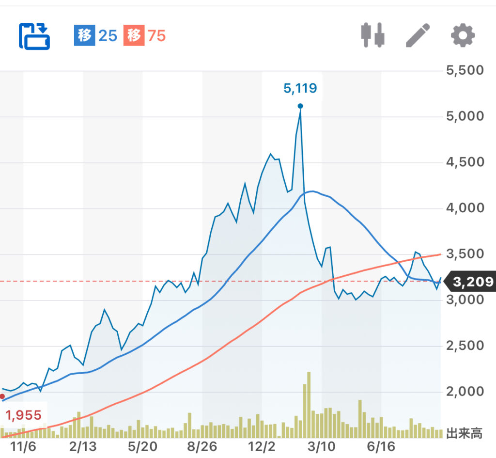 という感じでしょうか、さすがに5000円台で買う気は起きませんでしたが、多少含み損があるにしても思い切って買ったことは良かったと思いますし、多分株価は戻すと思っています。